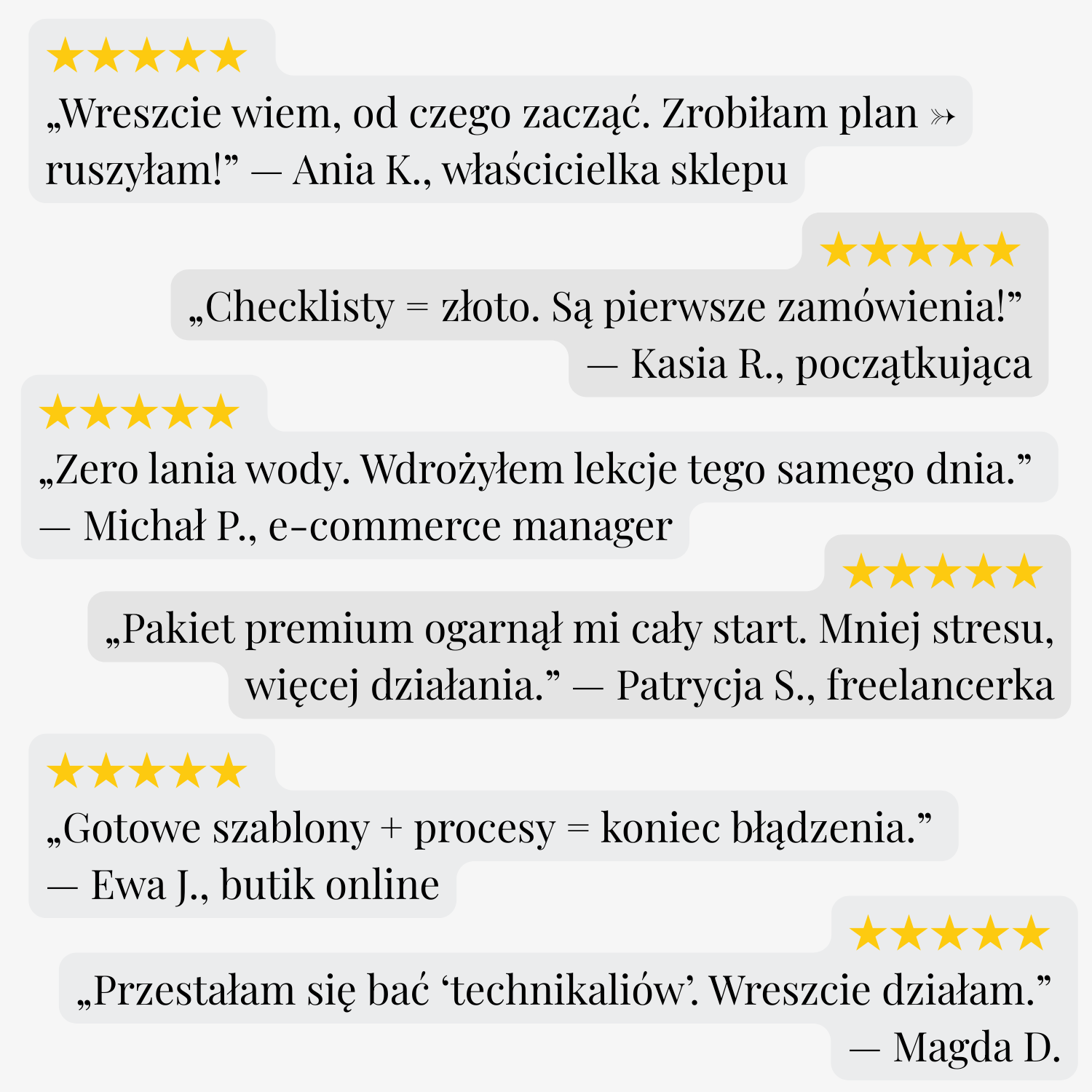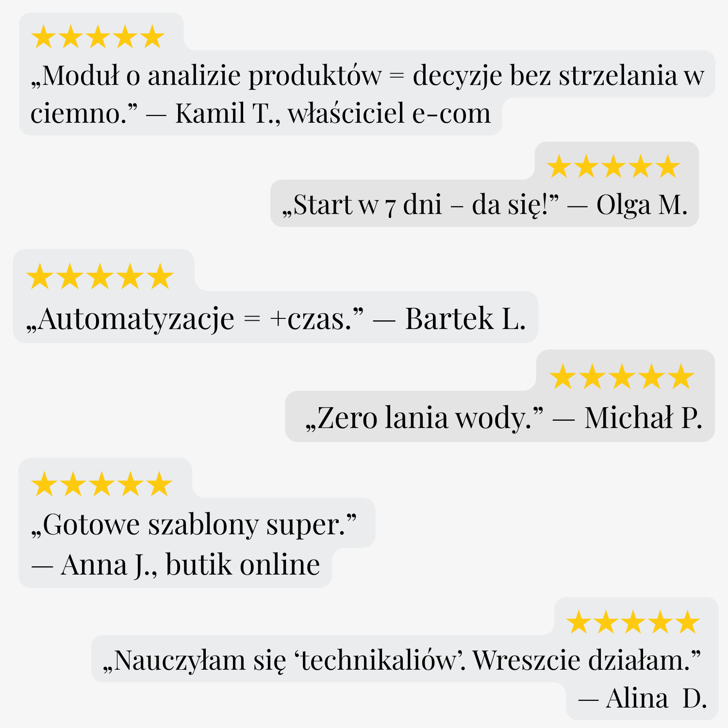 Pakiet Premium pozwoli Ci wejść na wyższy poziom profesjonalizacji w e-commerce. Zamiast działać chaotycznie – otrzymasz gotowe rozwiązania sprawdzone w praktyce. Nauczysz się budować system sprzedaży, który działa za Ciebie.
